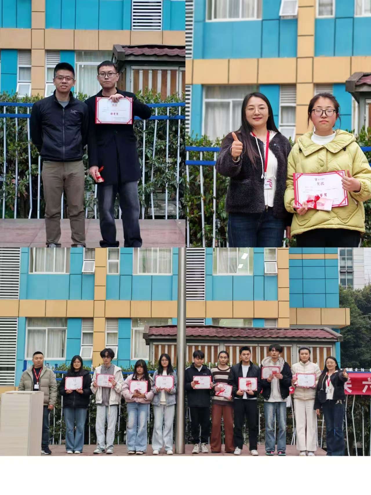 王老师、唐老师、蒋老师分别为特等奖、一等奖、二等奖获奖学员依次颁奖,闪光灯下,一张张洋溢着喜悦的脸庞,定格了拼搏的荣耀,也让现场学子真切感受到“努力终有回报,拼搏成就梦想”。